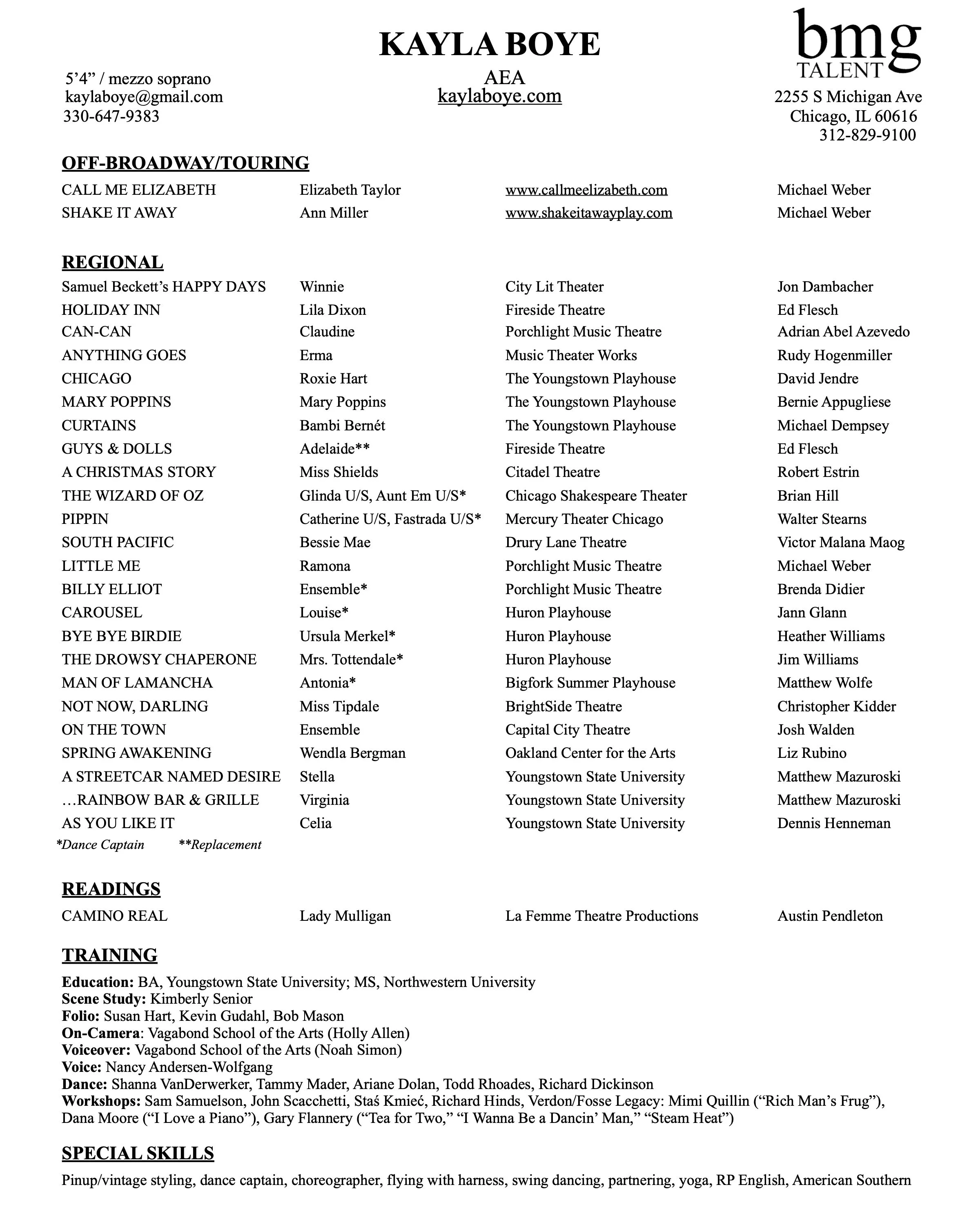 “Sparkling and hilarious!" Chicago Theatre Review “Sexy, triple threat talent" Chicagoland Musical Theatre “Outstanding!" Stage and Cinema ACTORS ACCESS IMDB CASTING NETWORKS Banner Image: Brett Beiner